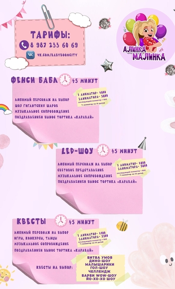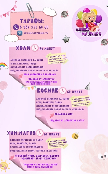 1. шкатулка красоты, дети красят себя сами, аниматор помогает каждому( 1 ребенок- 150р)